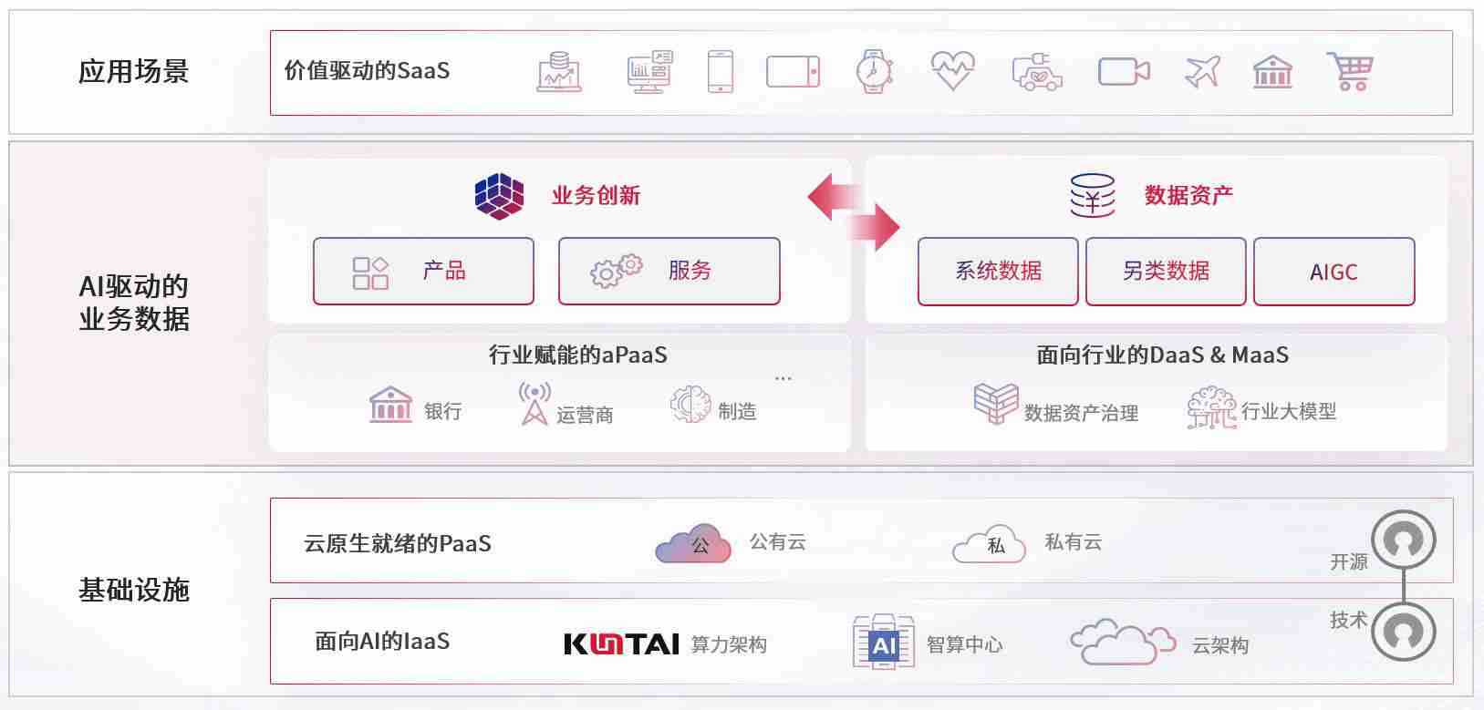 数字时代,,围绕企业数字化转型的关键要素,,,,尊龙旗舰厅数码开创性的提出数云融合战略和技术体系框架,,,,着力在云原生、、数字原生、、AI原生和信创产业上架构产品和服务能力,,,为处在不同数字化转型阶段的快消零售、、、汽车、、、金融、、医疗、、、、政企、、教育、、运营商等行业客户提供泛在的敏捷IT能力和融合的数据驱动能力,,,,构建跨界融合创新的数字业务场景和新业务模式,,,,助力企业级客户建立面向未来的核心能力和竞争优势,,,,全面推动社会的数字化、、智能化转型升级。。