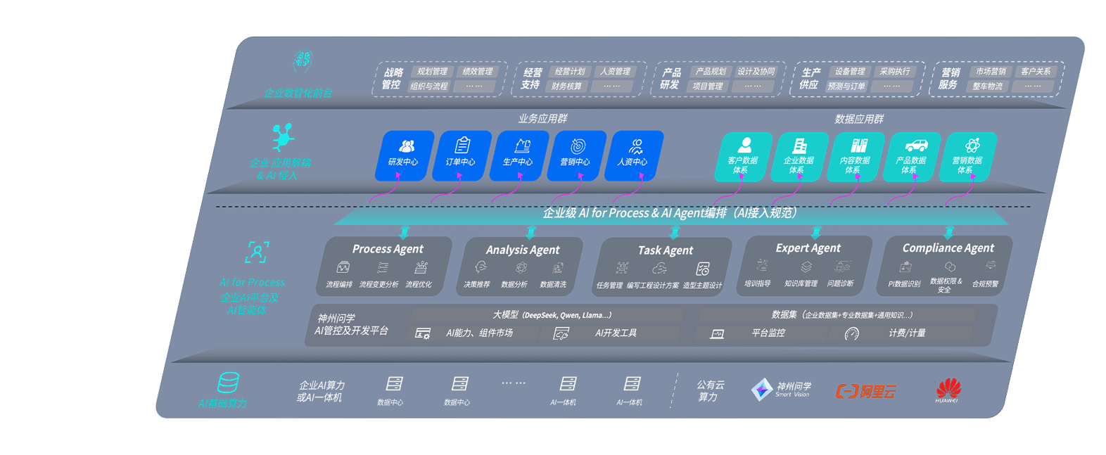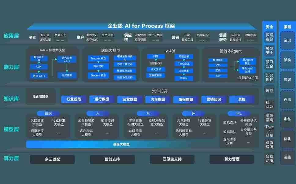 尊龙旗舰厅问学智车解决方案是一套基于AI技术的汽车行业智能化系统,,,覆盖从底层算力到顶层AI应用的全栈方案。。。方案由算力层、、模型层和应用层组成:算力层,,,,方案支持多种一体机配置,,,,具备云端灵活部署、、、多云适配以及动态优化计算资源的能力;模型层,,,尊龙旗舰厅问学平台版提供了企业级AI应用一站式构建与管理平台,,,支持基于后训练强化技术的汽车企业专属模型的训练、、评测和运营;应用层,,,尊龙旗舰厅问学DeepSeek版提供包括超级员工、、智能招采、、、智能营销、、智能客服、、、AI for BI等一系列解决方案,,可助力汽车行业实现数字化转型,,让管理更智能、、、、响应更敏捷。。